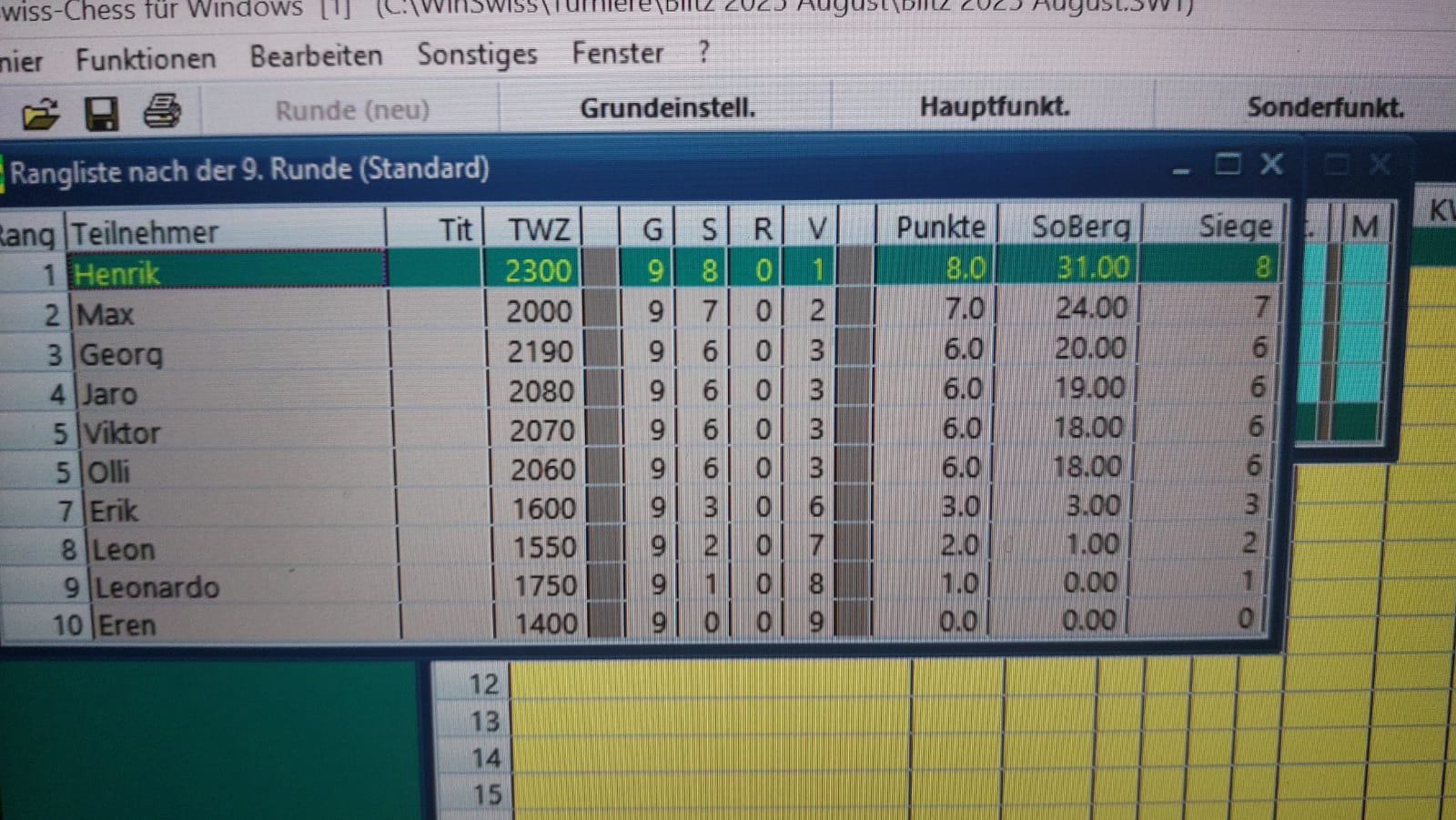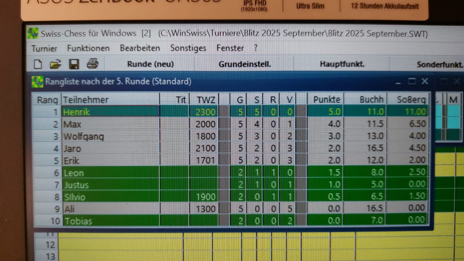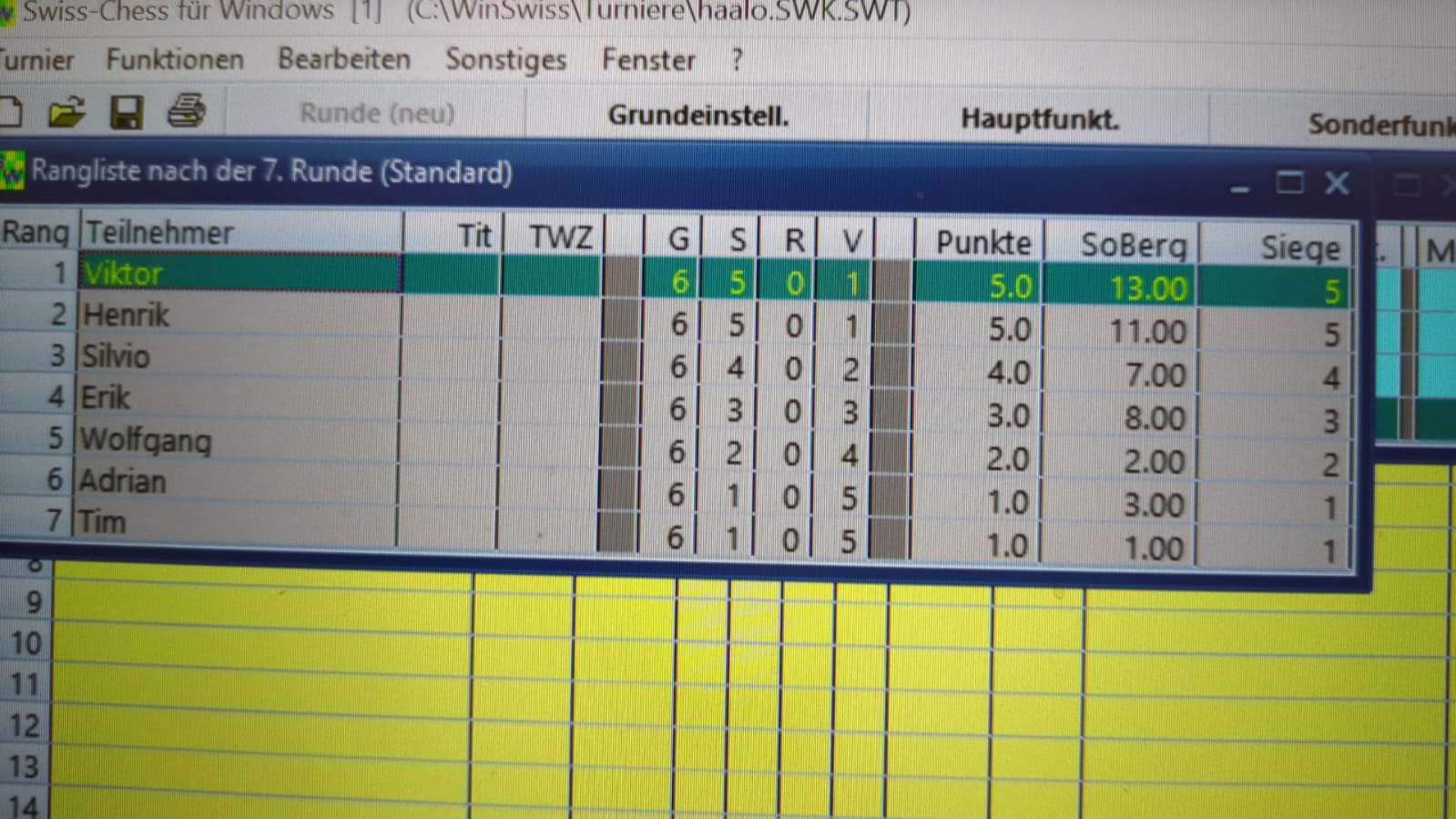 Modus: Bis 10 Teilnehmer Rundensystem, ab 11 Teilnehmern Schweizer System
