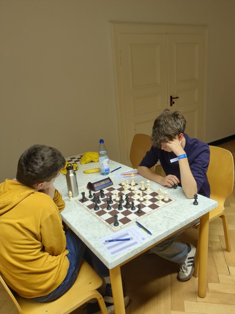 Am Nachmittag war für die Jugendlichen die 2. Runde Training angesagt und die Jüngeren spielten ein Schnellschach Turnier unter sich. Da setzte sich Paul souverän mit 4,5/5 durch und belegte den ersten Platz, dicht gefolgt von Elias (2. Platz) und Charlotte (3. Platz), beide 4/5 Punkte, aber Elias die leicht bessere Buchholz-Wertung.