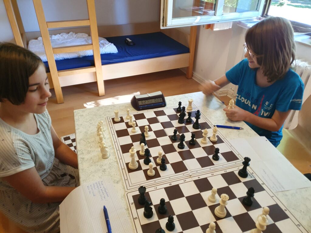 Die Jüngeren bereiteten sich währenddessen auf den Abschlusstest vor, der für sie kreiert wurde, um am Ende der Fahrt die neu erworbenen Kenntnisse abzuprüfen. Dazu arbeiteten sie intensiv in ihren jeweiligen Heften und wurden stark gefordert. Danach hatten sie auch noch die Gelegenheit, gegeneinander zu spielen. Dabei gab es Schachmemory und Schach mal anders mit Sonderregeln.