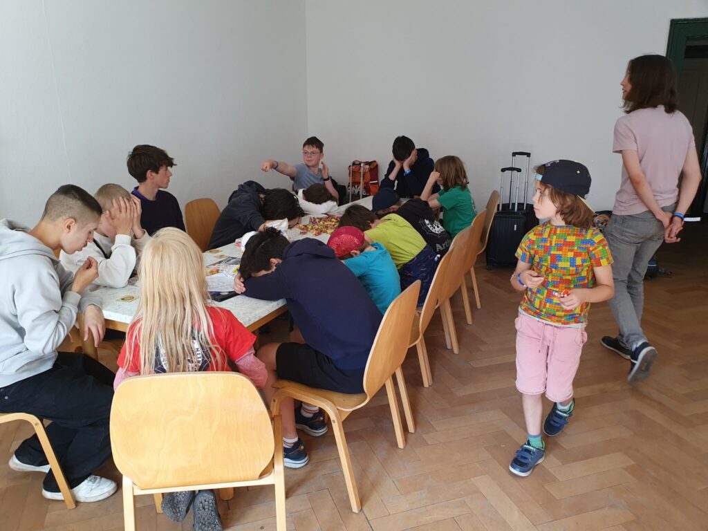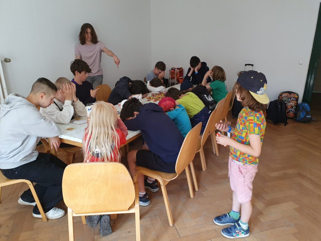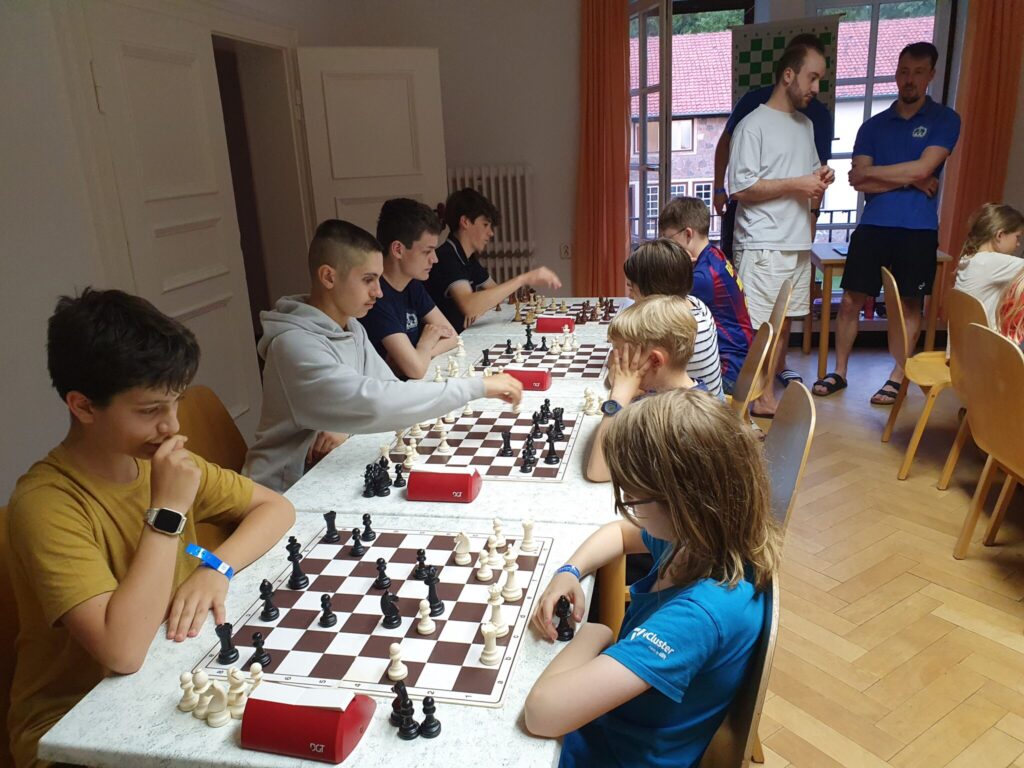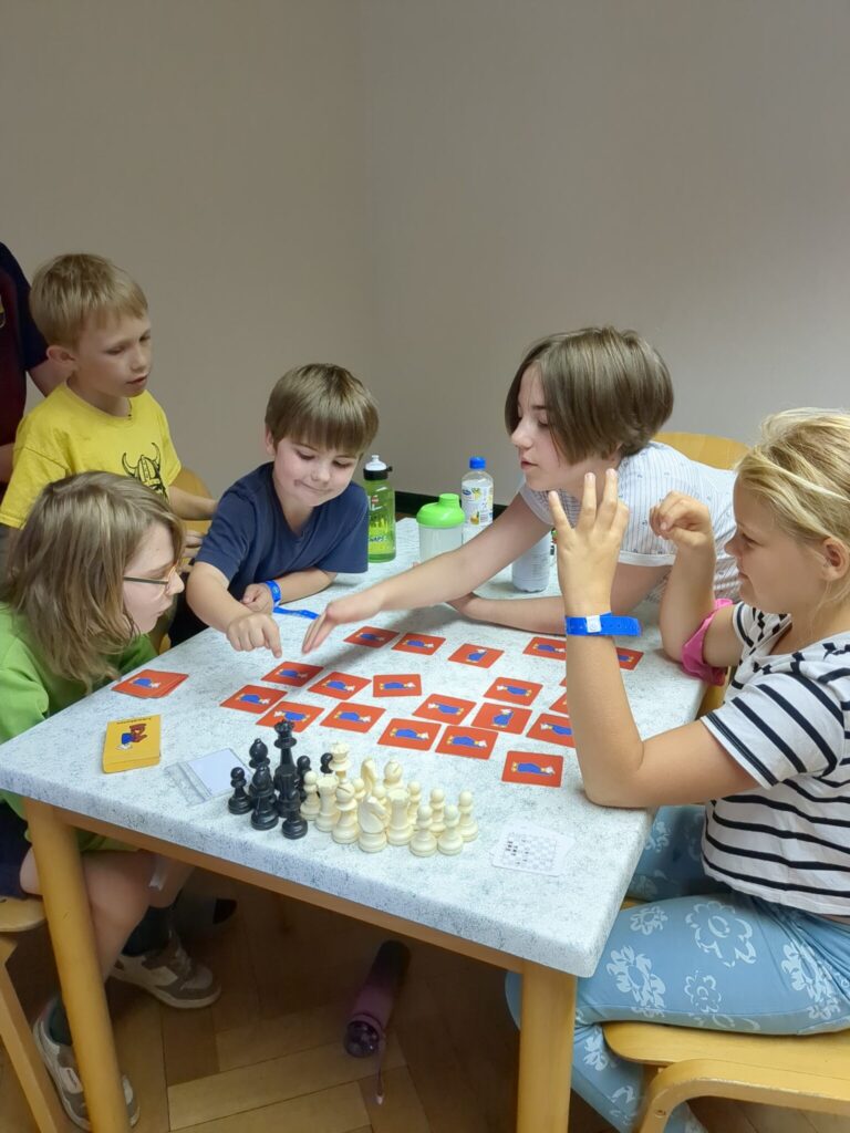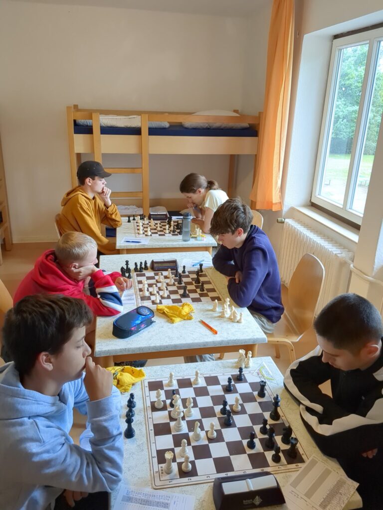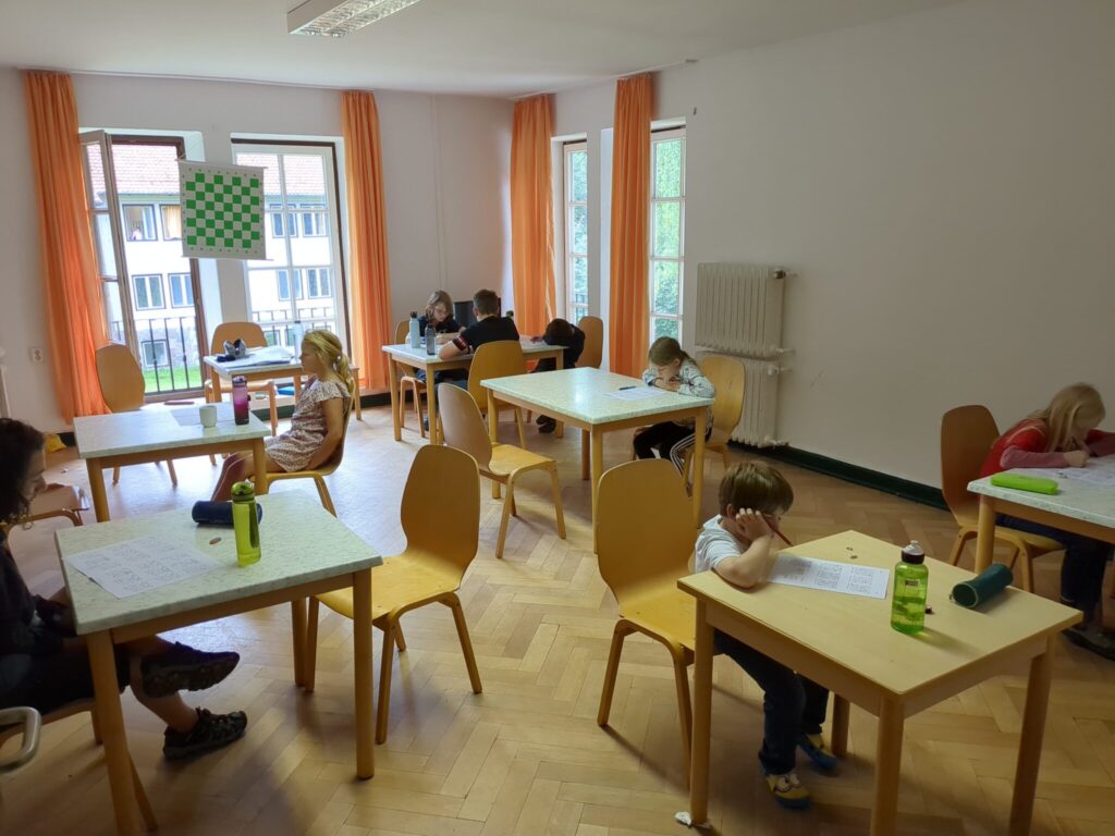 Die Jüngeren bereiteten sich währenddessen auf den Abschlusstest vor, der für sie kreiert wurde, um am Ende der Fahrt die neu erworbenen Kenntnisse abzuprüfen. Dazu arbeiteten sie intensiv in ihren jeweiligen Heften und wurden stark gefordert. Danach hatten sie auch noch die Gelegenheit, gegeneinander zu spielen. Dabei gab es Schachmemory und Schach mal anders mit Sonderregeln.
