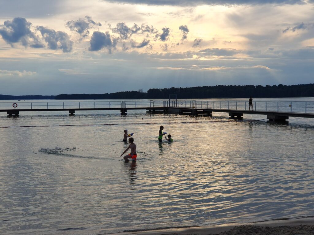 Dann kam der Bus und der Busfahrer hat tatsächlich jeden Einzelnen von uns auf VBB-Freizeitticket + Schülerticket kontrolliert, was die Weiterfahrt dann doch noch verzögert hat. Aber wir kamen noch vor dem Mittagessen beim Seezeit-Resort an, sodass wir genug Zeit hatten, die Zimmer zuzuteilen und die Betten zu beziehen, bevor wir zum ersten Mal in die Kantine gingen. Das Essen war immer vielfältig, denn es gab zu jeder Mahlzeit ein Gericht (auch immer mit einer vegetarischen Variante) und verschiedenste Beilagen, die man sich selbst dazu tun konnte. Beispielsweise eine Salat-Bar mit frischem Salat oder zum Frühstück eine Müsli-Bar, also wurde in dieser Woche die Annahme, dass Kantinenessen nicht schmeckt oder eintönig ist, widerlegt.