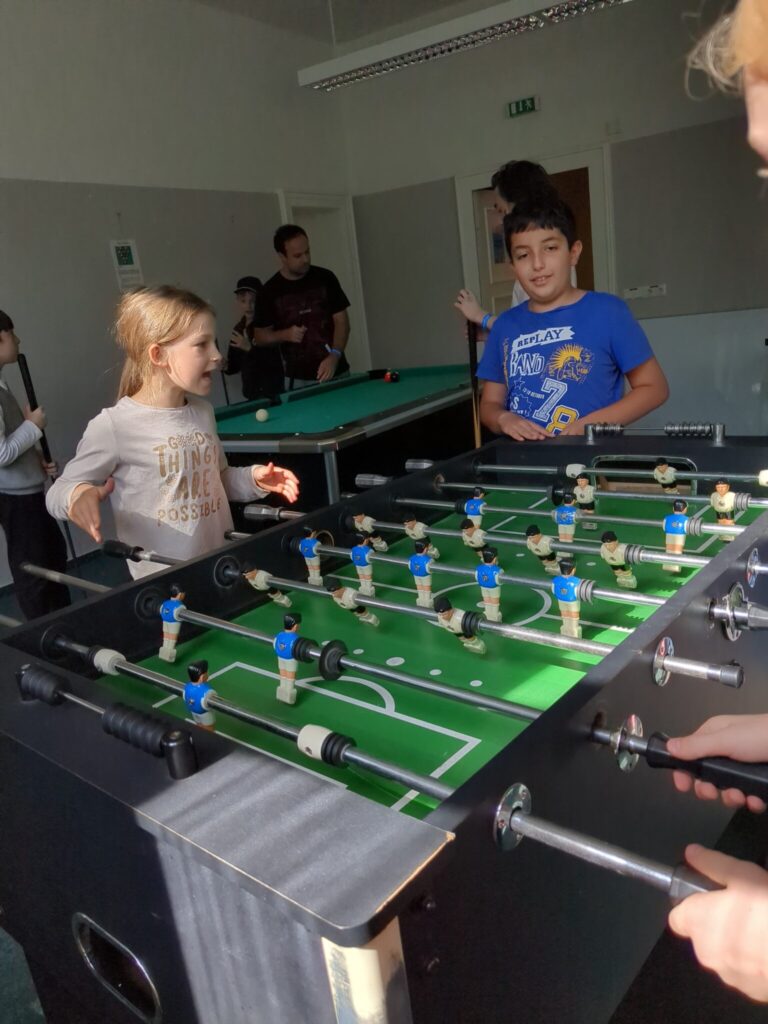Die Kinder hatten morgens ihren Abschlusstest zu Themen aus der Stappenmethode. Danach erkundeten sie das Funhouse (Spielhaus) u.a. mit Billiard, Tischkicker und Airhockey.