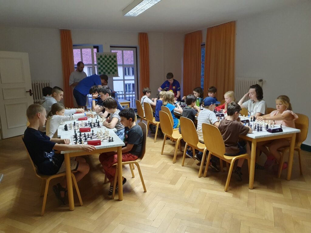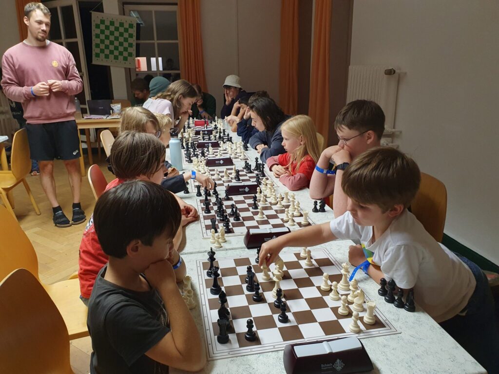 Später gab es für die Jüngeren noch ein Quiz, was ihnen offenbar großen Spaß gemacht hat. Der Tag war also bis hierhin anstrengend, wegen des harten Trainings, aber hat auch viel Spaß gemacht. Nach dem Abendessen gab es aber noch das Highlight des Tages: das Blitzturnier, wobei die Jugendlichen und die Jüngeren gemischt im Schweizer System gegeneinander antraten.